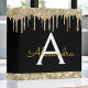 Black and Gold Modern Faux Dripping Girly Modern Glitter and Sparkle Elegant Binder for Back to School, Recipes, Cookbook, Work or Wedding or Event Planning. These Binders for Girl's can be customized to include your initial and first name and make a perfect customized and personalized gift.