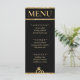 Black and gold glitter stripe wedding reception menu. Personalize the meal list and names.