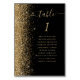 The left-hand edge of this elegant modern wedding table number card features a gold faux glitter border. The word "table" appears in gold-colored whimsical handwriting script on a black background. Add the names of your guests who are assigned to each table.