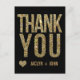 Modern, contemporary, gold glitter typography wedding thank you postcards, personalized with the bride and groom's names. Back is blank for you to write your own handwritten personal message.