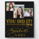 Featuring a sleek black background with luxurious gold accents, this plaque exudes sophistication and class. The design allows for multiple photos, giving you the chance to highlight proud moments—graduation portraits, group photos with friends, or memorable candid shots. Personalize it further with the graduate’s name, school, graduation year, or a heartfelt message to make it truly unique.