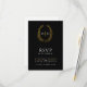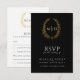Black gold hand drawn leaf monogram RSVP wedding Card