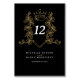 Black and gold crest drawing art table number. Edit this wedding table number with your couples names and wedding date. Table cards have to be added to your cart one at a time, discounts may apply to multiple cards. Original design and crest with heart crown, entwined with leaves and berries hand drawing by Sarah Trett for www.mylittleedenweddings.com exclusively on Zazzle.