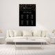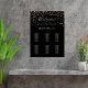 A classic black background. Decorated with golden hearts. Personalize and add the name of the bride and groom, add your guests names. White text.