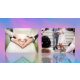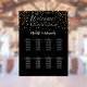 A classic black background. Decorated with golden hearts. Personalize and add the name of the bride and groom, add your guests names. White text.