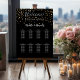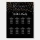 A classic black background. Decorated with golden hearts. Personalize and add the name of the bride and groom, add your guests names. White text.