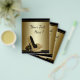 Elegant Black and gold high heel shoe flyer with beautiful pair of gold glitter high heel shoes on a black and gold background. You can add the text of your choice in the font style you prefer. You can add text, images, logos, etc., to the front and back as needed.