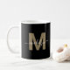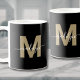 Personalized Modern Glamorous Black Gold Initial Name Monogram Coffee Mug. This stylish mug combines a modern minimalist vibe with a glamorous, personal touch, perfect for any coffee or tea lover. Featuring a bold gold initial (in a warm, flat brown hue with no shimmer) on a sleek black background and a classic white script name, the luxury monogram appears on both sides for a standout look from every angle. With a chic and sophisticated feel, this mug makes an ideal gift for birthdays, housewarmings, holidays, or just because. It’s also a great choice for adding a glamorous touch to your morning coffee routine.
