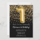Black Gold Kids Girl 1st Birthday Party Invitation
