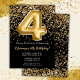 Black Gold Kids Girl 4th Birthday Party Invitation