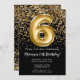 Black Gold Kids Girl 6th Birthday Party Invitation