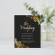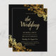 The intricate gold lace foil-look design contrasts beautifully against the black background, creating a dramatic and luxurious effect. These invitations are perfect for formal or black-tie weddings, as well as modern weddings with a touch of glamour.