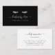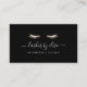 Elegant business card design for your eyelash extensions or tinting services features your name or business name in modern, hand lettered script typography, accented with a lush pair of eyelashes in faux gold foil on a black background. Add an additional line of text beneath in matching black lettering for your occupation or title. Personalize the reverse side with your contact details. A chic and professional choice for estheticians specializing in lash services.