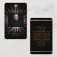 Classic black background, a faux gold frame and space for your photo. A golden cross. Light beams, behind the photo. Personalize and add name, dates and your text and prayer.
