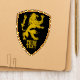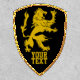 Black and gold lion crest shield shaped sublimated patch. Choose your own text. You can change the colors of the background, lion, and text in the design tool. You can also change the sizes of the lion and the text. The stitching color can change as well.