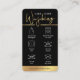 Be sure your customers know how to take care of their garment with a personalized clothing washing instructions business card. This black and gold clothing washing care card includes modern script and serif fonts, space for your logo and business details and washing care icons (edit using the design tool to discover more icons in the hidden layers). Add this faux gold luxury clothing care instructions card and finish off your fashion boutique's packaging.