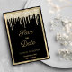 Black gold luxury glitter drips Save the Date Invitation
