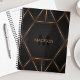 A cool luxurious style abstract planner featuring black and gold geometric design. Personalize with your monogram and name.