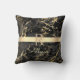 Black & Gold Marble, Gold Bar, DIY Name & Monogram Throw Pillow