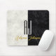 Elegant black and gold marble monogram mouse pad designed for a modern, minimalist and luxurious workspace. This personalized mouse pad features bold initial lettering paired with a refined gold script name, creating a clean and sophisticated design.