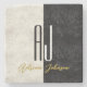Elegant and modern black and gold marble monogram stone coaster, designed for a refined and minimalist aesthetic. This personalized coaster features a bold initial monogram paired with a stylish gold script name, set against a contrasting black and white marble background.