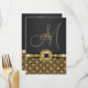 “Menu templates” with customizable text templates. DESIGN – This flat card has a "charcoal grey" background, with a gold damask pattern at the bottom, above which is a black band on which a golden chain encrusted with diamonds, pearls and a black topaz. CUSTOMIZE IT – Change the monogram to your own, add any wording of your choice and feel free to change the the size and color of the font too, by using the “customize it” button. IDEAL FOR – Wedding, “bridal shower”, anniversary, birthday, prom, graduation, “sweet sixteen”, quinceanera and corporate formal breakfast, luncheon and dinner events, functions, gatherings and parties. COMPLIMENTING RANGE OF PRODUCTS – See the full range below. COLORS AVAILABLE – Visit our mensgifts store to view the full range of luxurious colors in this design – http://www.zazzle.com/mensgifts* CUSTOM REQUESTS – If you would like this design on another product, or would like to discuss any changes you may require, please feel free to contact me on clientrequestrw@gmail.com and we can discuss your requirements, and costs, if any apply.