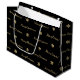 A black and gold merry christmas pattern with snowflakes on a gift bag.
