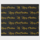 Gold color Merry Christmas script on a black background wrapping paper for the festive season.
