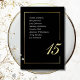 This minimal black, gold and white table number card is bold and elegant. The script typography table number is accentuated by border that frames the number. Add your guests' names to create a seating chart as well.