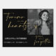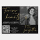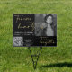 The Forever in Our Hearts Photo Memorial Tribute Garden Yard Sign is an excellent way to remember your departed loved one. It features an elegant handwritten typography script wording that says "forever in our hearts" and "gone but not forgotten" in faux gold paired with a serif white text that you personalize the name of your loved one and the date of birth and date of death. It includes a QR code for you to direct others to a memorial website or social media account to share the precious memories of your loved one.