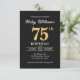 Black Gold Minimalist Modern Simple 75th Birthday Invitation