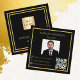 A classic black background and faux gold frames. Personalize and add your business logo, name and text on front.