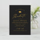 Black and gold simple graduation invitation with modern hand written calligraphy and grad cap, personalized photo on the back, simple and unique. Custom it with your own photo and grad party information.