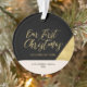 Celebrate the season with this stylish Christmas photo ornament. This design features modern lettering "Our First Christmas" with geometric color blocks. You can add your photo and personalize the text. More holiday gifts and cards are available at my shop BaraBomDesign.