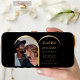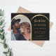 On front: Add your own vertical size photo. Faux gold photo arch frame. A black background, golden text. Personalize and add your names and the date.