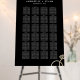 Ideal for a big wedding this black and white seating chart is a crucial part of your reception decor and gives your guests an easy way to find their place at a table. All of the text can be personalized including the table number, guest names, headline and subheading with your names and wedding date. This chart is set up for 24 tables with ten people at each, clear the last box or two if you have fewer tables or use the customize options to rearrange text boxes to your liking and needs.