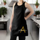 Black and Gold Monogram Name Apron. This makes the perfect sweet 16 birthday, wedding, bridal shower, anniversary, baby shower or bachelorette party gift for someone that loves glam luxury and chic styles.