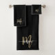 Black Gold Modern Script Girly Monogram Name Bath Towel Set