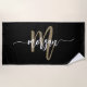 Black Gold Modern Script Girly Monogram Name Beach Towel