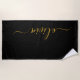 Black Gold Modern Script Girly Monogram Name Beach Towel