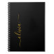 Black and Gold Simple Script Monogram Name Spiral Notebook Planner. This makes the perfect sweet 16 birthday, wedding, bridal shower, anniversary, baby shower or bachelorette party gift for someone that loves glam luxury and chic styles.