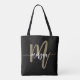 Black Gold Modern Script Girly Monogram Name Tote Bag