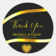 Introducing my Black and Gold Wedding Party Thank You Classic Round Sticker, an elegant and modern way to express your gratitude. This stylish sticker, adorned with a gold heart and shiny accents, can be personalized with your names and date, making it perfect for celebrating a 25th or 50th Wedding Anniversary. Whether it's for a couple's golden wedding anniversary or a chic vow renewal, this sticker is designed to capture the joy of the occasion with calligraphy and minimalist details. Ideal for thanking guests at a party for their love and support, it’s a beautiful keepsake for parents, son and daughter-in-law, or any couple celebrating their special day.