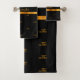 Stylish black with a faux gold frame. Personalize and add your monogram letters, initials as a married couple and name. Your family name's initial in the middle with a capital letter. His and hers. Golden colored letters. The name is written with a modern hand lettered style script. The monogram as a background pattern. Perfect as a wedding gift or as a gift for the newly weds.