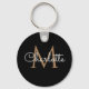 Chic black and gold monogram keychain. You can personalize the name, monogram and customize the font and colors to create your own unique design. Designed by Thisisnotme©