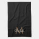 Black Gold Monogram Elegant Girly Script Kitchen Towel