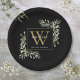 Black Gold Monogram Elegant Modern Greenery Paper Plates