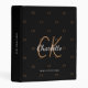 An elegant binder for school, office, diy projects or food receipes. Black background, white and golden text. Personalize and add your monogram initials and name. Your monogram letters as a pattern on the background. The name is written with a modern hand lettered style script. White letters.