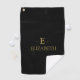 "Add a touch of sophistication to your golf game with this personalized black golf towel featuring a striking gold monogram. Made for both style and function, it’s perfect for keeping your gear clean while showcasing your unique initial. A great gift for golfers who appreciate the finer details."