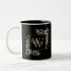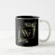 Black Gold Monogram Greenery Two-Tone Coffee Mug